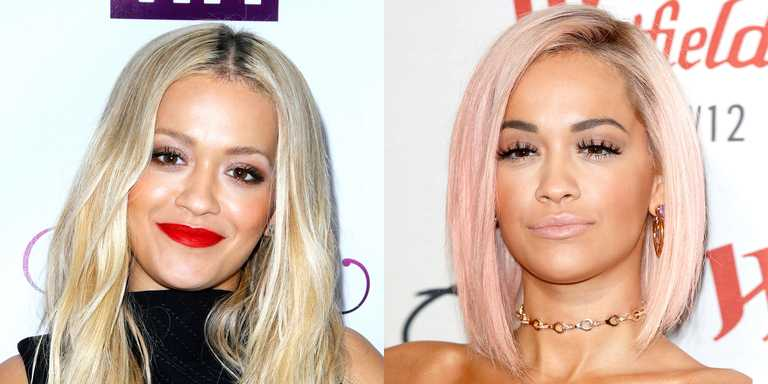 If you’re going to change hair color from a white blonde look, there is no better way to do so than to chop the hair into a bob and color it pink. Rita Ora shifted from platinum blonde hair and deep, rich red lips to a more pink appearance. She was seen at the 2014 London Westfield Event touting cotton-candy pink hair and lips to match. And, let’s not even talk about those eye-catching thick lashes that made a statement in and of themselves. She truly looks as though a completely different person stepped in to take her place at the event.