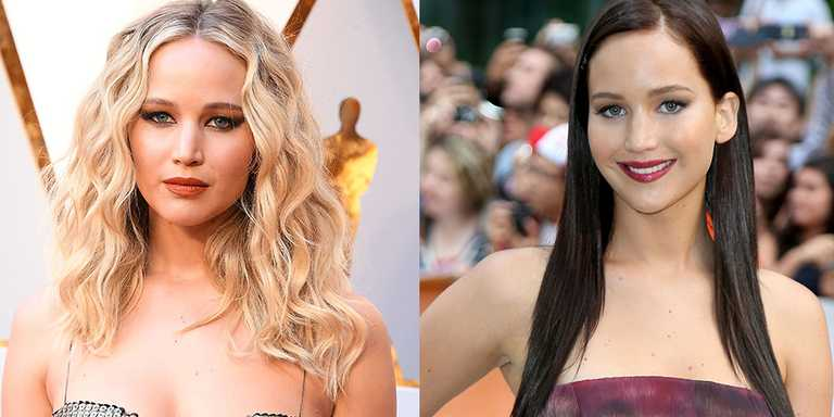 It’s as different as black and white, day or night. Jennifer Lawrence made her debut at the premiere of Silver Linings Playbook in 2012 wearing dark brown hair instead of her iconic long, blonde waves. She looked like a completely different person. This girl in long, wavy blonde hair and winged dark outlined eyes is the look fans came to love. Now that she was sporting a dark hair color, she also went with a side part and long, straightened hair that runs midway to her chest. In the pictures, she also added a toothy smile that completely cracks the case as to who the real Jennifer Lawrence really is.